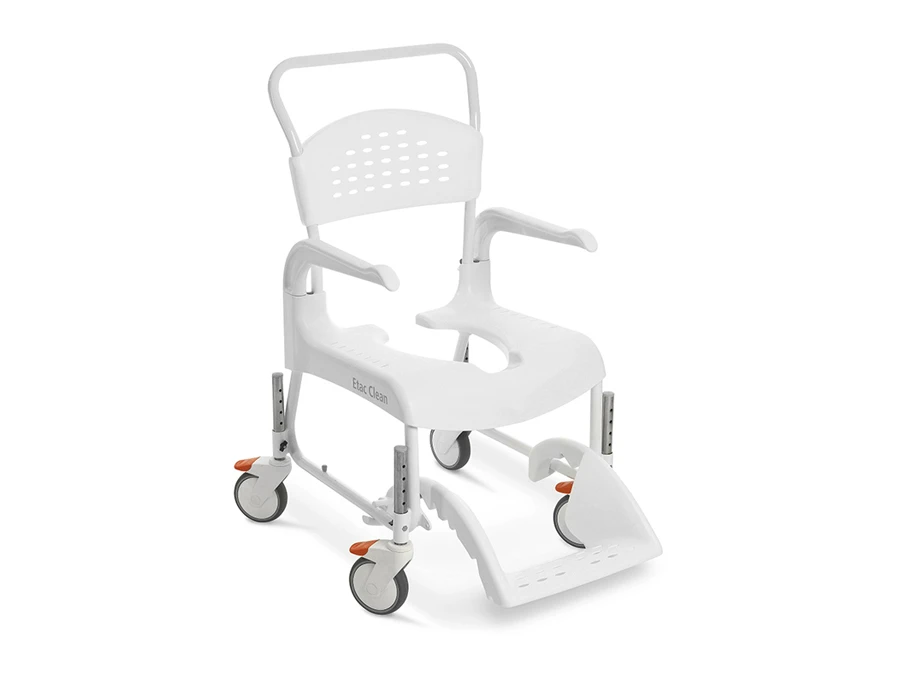 ETAC Clean to bezpieczny, ergonomiczny i wielofunkcyjny wózek inwalidzki z funkcją toalety, który znacząco ułatwia codzienną higienę osobom z niepełnosprawnością ruchową oraz ich opiekunom.