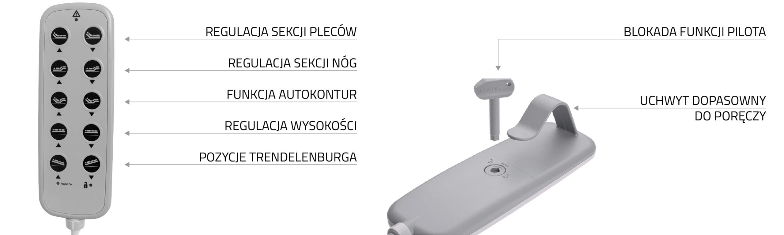 • pełna elektryczna regulacja wysokości oraz segmentów leża,
