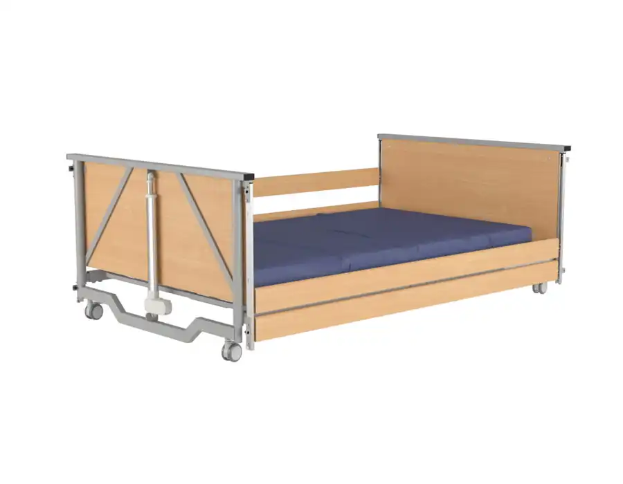 To łóżko rehabilitacyjne łączące poszerzoną konstrukcję z obniżoną wysokością. Zapewnia komfort, bezpieczeństwo i funkcjonalność na najwyższym poziomie.