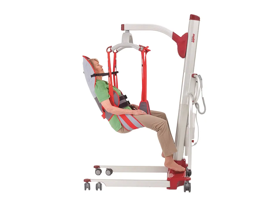 Molift RgoSling HighBack Toilet to profesjonalna podwieszka toaletowa z podparciem głowy, zapewniająca bezpieczeństwo, stabilność i komfort podczas transferu pacjenta.