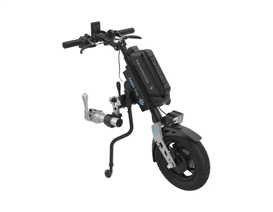 PAWS City 14” to nowoczesna przystawka elektryczna do wózka inwalidzkiego, zaprojektowana z myślą o komfortowym poruszaniu się w przestrzeni miejskiej. Większe, 14-calowe koło zapewnia lepszą stabilność jazdy, zachowując jednocześnie wysoką zwrotność i łatwość manewrowania.