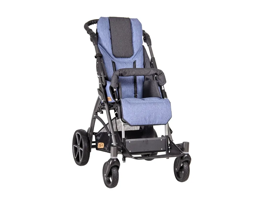 Wózek został stworzony z myślą o dzieciach z łagodnymi i umiarkowanymi potrzebami posturalnymi. Odpowiednio wyprofilowane siedzisko oraz możliwość zastosowania dodatkowych elementów stabilizujących pomagają lepiej ustawić ciało dziecka i poprawiają wygodę codziennego użytkowania. To ważne szczególnie wtedy, gdy wózek ma służyć nie tylko do krótkich przejazdów, ale również do dłuższego przebywania w pozycji siedzącej lub półleżącej.